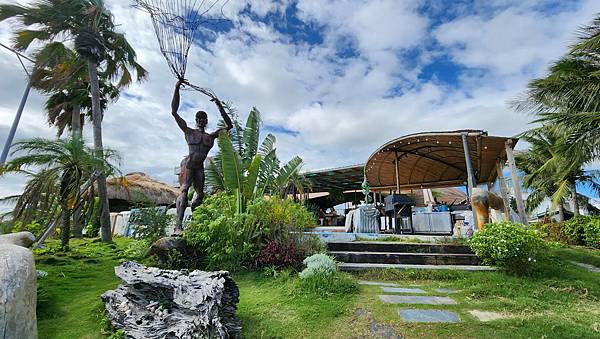 這是餐廳的另一入口,高舉撒網的捕魚人象徵阿美族人與海洋的緊密連結。