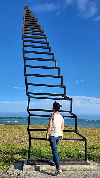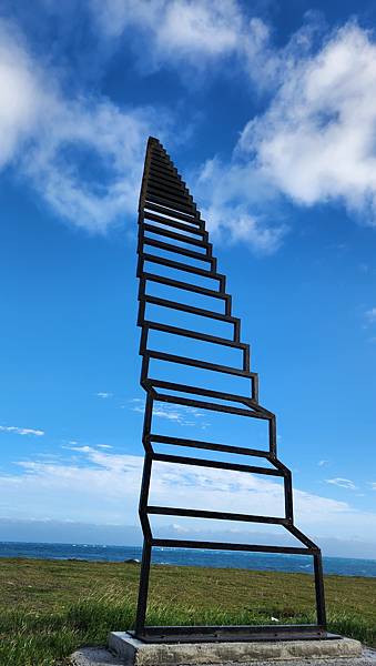 透過階梯望向無邊無際的藍天和大海,只覺自身的渺小與無作為,小女子OBS也只敢做做樣子登階,誰知3月8日竟聽聞有一遊客硬是真的攀爬上天梯,造成裝置倒塌受損,自身也受傷送醫。