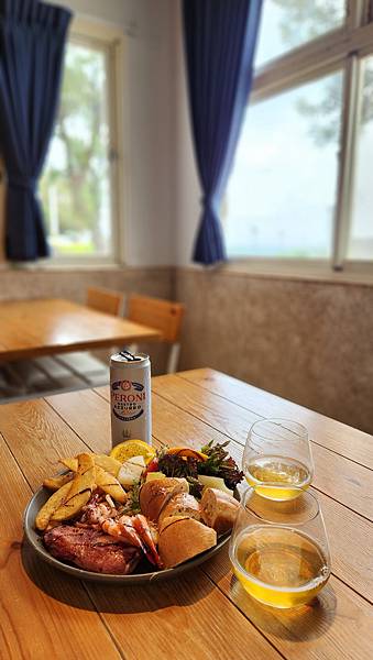 吹吹風咖啡館的『外婆的澎湖灣』拼盤,有蝦子、有小管,澎湖味十足。