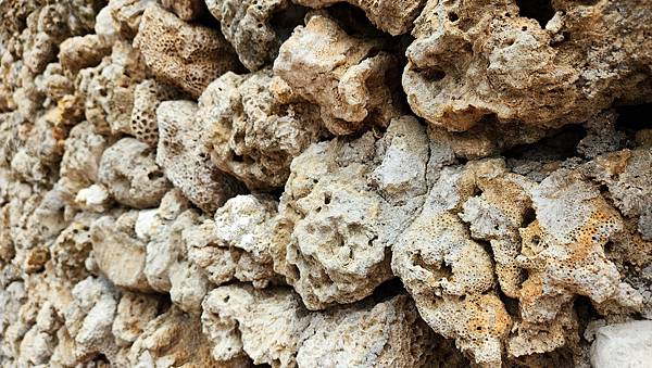 澎湖島內的老牆多為珊瑚礁岩所砌,珊瑚礁岩在大街小巷靜默地訴說著媽宮城的嬗遞。