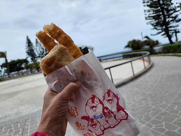 燒餅店沒有用餐區,我們帶著燒餅油條到觀音亭親水遊憩區慢慢享用,這個園區就是有名的『外婆的澎湖灣』。