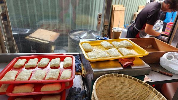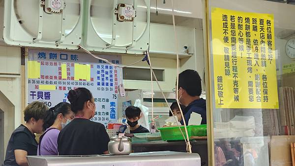 排隊購買的人潮一直維持十多人,櫃檯不斷接單、爐邊忙著煎烤,另一頭製作燒餅小哥的手也沒閒著。