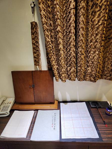 民宿房間雖不大,設備很齊全,有桌有椅、照明足,初學書法的OBS每晚還可以練字。