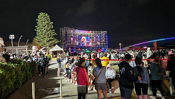 舞台區座無虛席,當天播放迪士尼『動物方程式』,娛樂等待施放煙火的群眾。